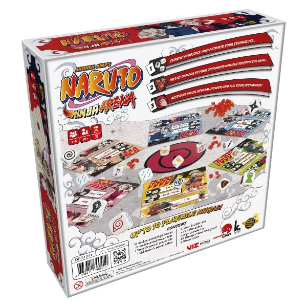Naruto : Ninja Arena is the first game using the Roll & Clash system. During the game, you throw your dice as quickly as you can and use the results to activate Techniques without stopping the game. Everyone plays at the same time in a frantic battle to be the last Ninja Standing!