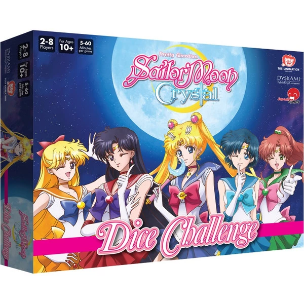 Sailor Moon: Crystal Dice Challenge Base Game – The Pretty Guardians and their allies need your help to defeat the Dark Kingdom and the Black Moon. And new Pretty Guardians have arrived just in time to defeat the Witches 5 and Mistress 9. Square off in one-on-one dice battles or team up for larger action! Includes Seasons 1 and 2.
